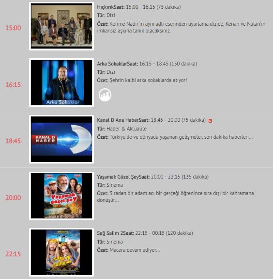 Kanal D ekranlarında Yaşamak Güzel Şey isimli sinema filmi ekranlarda olacak. Kanal D’nin sevilen dizisi Siyah Beyaz Aşk 1 Ocak Pazartesi günü ekranlarda olmayacak. Dizi reklam anlaşmaları ve yılbaşı tatili dolayısı ile bu hafta yeni bölüm yayınlanmayacak.