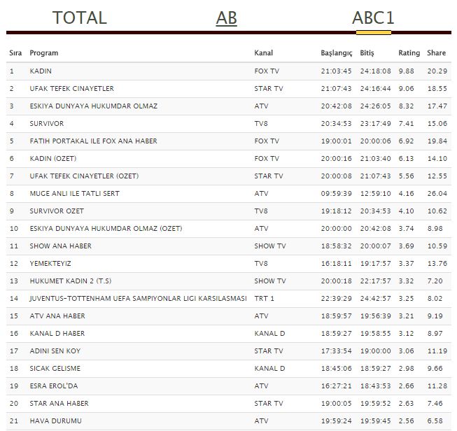 | 8 | AHMET HAKAN’LA KANAL D HABER | 06-02-2018 | 3.4 | 10.14 |