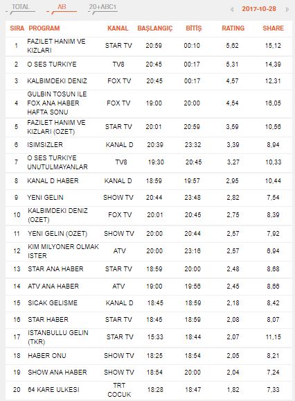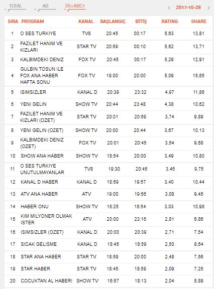 GÜNLÜK REYTİNG SONUÇLARI<<<Tıkla