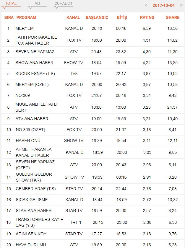 Tıkla>>> GÜNLÜK REYTİNG SONUÇLARI <<< Tıkla