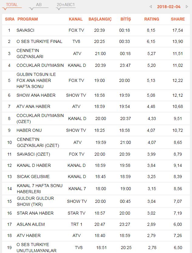 | 8 | ATV ANA HABER | 28-01-2018 | 19:54:42 | 4.08 | 9.92 |
