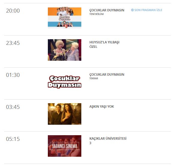 Önce isterseniz 4 Şubat 2018 Pazar günü ekranlarda hangi diziler olacak onlara bir göz atalım. Daha sonra kanalların 4 Şubat 2018 pazar yayın akışlarını paylaşalım. 4 Şubat Pazar günü Saat 20.00’de Trt1 ekranlarında Aslan Ailem 21:45’te ekranlara gelecek, Atv’de Cennetin Gözyaşları yayınlanmayacak, Kanal D’de Çocuklar Duymasın yılbaşı özel bölümü ile ekranlara gelecek, Star Tv’de Hayat Sırları ile ekranlara gelirken Fox’ta Savaşçı ekranlarda olacak. İşte tüm kanalların 4 Şubat 2018 Pazar günü yayın akışları. TV Yayın Akışları