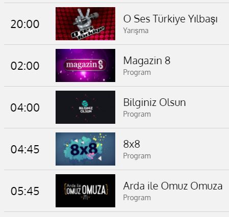 4 Şubat 2018 Pazar Tv8 Yayın Akışı