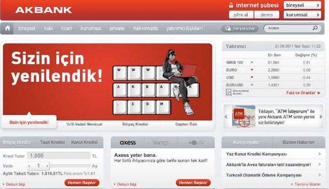 Ak Bank ta bu sebeple müşterilerine çeşitli seçenekler sunmuştur.Bunlardan bir tanesi de internet bankacılığı olmuştur. İnternet bankacılığı herkesin elindeki telefonla kısa süre içinde zaman kaybetmeden halledeceği şekilde tasarlanmıştır.
