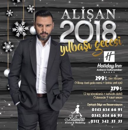 2018 yılbaşı coşkusunun hız kesmeyeceği Holiday Inn Çukurambar’da ise sahne alacak ünlülerimiz; ALİŞAN ve Orkestrası, Muhteşem ses ve yorumu ile ELİF DOĞAN, nefes kesen dansları ile oryantal MİA, Sunucumuz Sinem Boyan, hediye çekilişleri ve eşsiz yılbaşı gala menüsü sizleri bekliyor olacak.