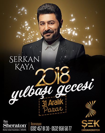 Türkiye’nin son yılların popüler sanatçılarından Serkan KAYA 2018 yılbaşı gecesi Sheraton Hotel Ankara ‘da sahne alacak. 2018 Ankara yılbaşı galasını kaçırmayın deriz. Geçtiğimiz yıl iddialı organizasyonlarla adından söz ettiren ŞEK Organizasyon tarafından düzenlenen organizasyonu kaçırmayın.