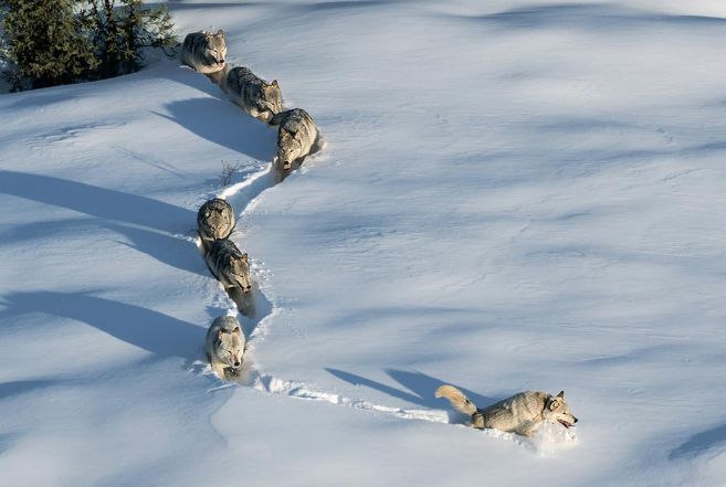 Bir saldırı anında sürünün en zayıf halkaları olan yaşlı kurtlar ölecektir. Aynı zamanda zor hava şartlarında yolu açacak olan da onlardır. 3 yaşlı kurdun ardından ise 5 savaşçı kurt sürüye önderlik yaparlar. Yaşlı kurtlara saldıran olası hayvanlara en sert darbeyi onlar vururlar. Sürünün orta kısmında ise 10 ila 11 dişi kurt vardır. Bu dişi kurtlar sürüyü koruma pozisyonunda ilerlerler. Dişi kurtları ise arkadan gelen 4-5 deneyimli kurt takip eder. Bu kurtlar sürünün arkasından sorumludur ve sürünün en zayıf halkası olan arka kısmı korurlar.Ve geldik sürünün lider(börü) olan kurda.