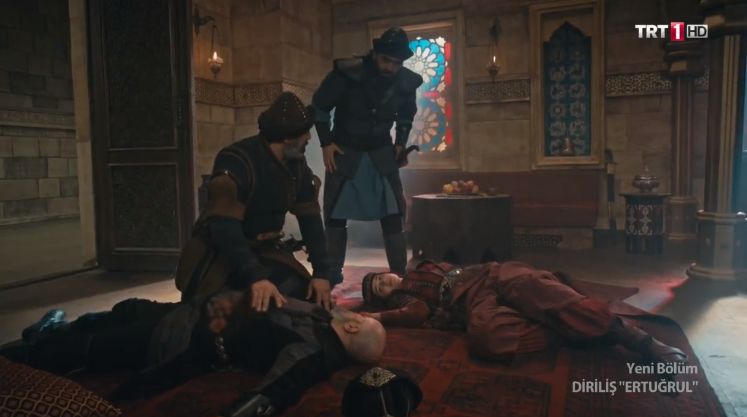gizlice Obasından çıkan Aslıhan Hatun kimseye sezdirmeden Konya’ya Saadettin’in yanına gider. Onunla konuşma ve Obasını kurtarmak istediği bahanesi ile konuşur. Saadettin hazırlıksız olduğu bir anda yanındaki şişi Saadetin’e saplamaya başlar. Saadettin de bir boşlukta şişi alır ve Aslıhan’a saplar. Tam kalbinden hançeri yiyen Aslıhan yere yığılır ve Saadettin’de yere yığılır.