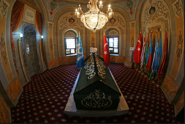 Ertuğrul Bey’in ataları 9. yüzyılda Moğol istilasından kurtulmak için Semerkant şimdiki adıyla Özbekistan üzerinden geçerek Ceyhun nehri dolaylarını aşarak Horasan bölgesinde Mevr şehrine yerleşmiştir. Kayı boyunun reisi Ertuğrul Bey’in babası Gündüzalp, Halep’te Caber Kalesi’nin kuzey batısında Fırat nehrini geçerken boğulmuştur. Şimdi Türk Mezarı olarak bilinen Suriye’deki bu mezar 22 Şubat 2015’te Türk Silahlı Kuvvetleri tarafından gerçekleştirilen, Süleyman Şah Türbesi’nde bulunan 38 personelin Türkiye’ye getirilmesi ve türbe içerisinde yer alan Süleyman Şah ve iki askerinin naaşı ile diğer eşyaların Suriye’nin Eşme köyüne taşınmıştır.