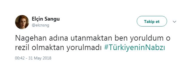 Elçin Sangu Nagihan adına utanmaktan ben yoruldum O Rezil olmaktan yorulmadı dedi. Elçin Elçin Sangu Twitter’dan bu ifadeleri içeren paylaşım yaptı.