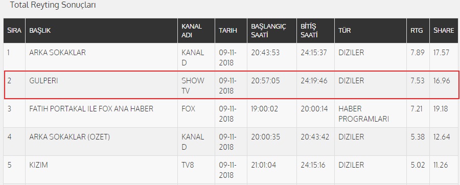 16. Kasım Gülperi Reytingleri açıklanır açıklanmaz burada sizinle paylaşılacaktır.