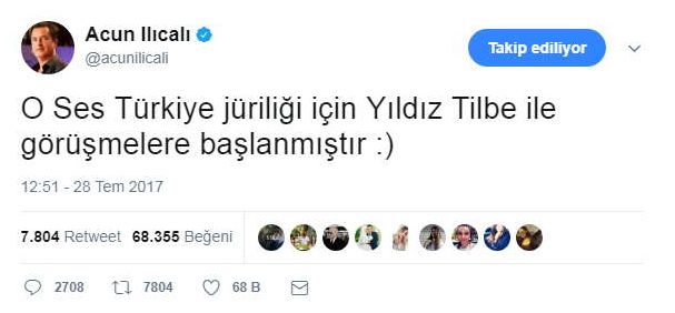 Yıldız Tilbe ile görüşülmeye başlandığını Acun twitter hesabından duyurdu. Acun resmi twitter hesabından yaptığı açıklamada “O Ses Türkiye jüriliği için Yıldız Tilbe ile görüşmelere başlanmıştır :)” dedi.