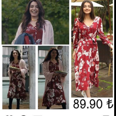 Yine Asiye’nin 14. bölümde giydiği kırmızı çiçekli salaş elbise Bade Butik 89,99 TL.
