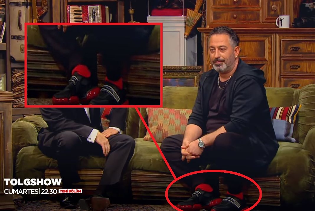 Tolgshow Cem Yılmaz’ın Kırmızı-Siyah Ayakkabısı Markası Ne? Geçtiğimiz hafta ilk bölümü ile ekranlara gelen Tolgshow, izleyenlere eğlenceli ve bol kahkahalı dakikalar yaşattı. Tolga Çevik’in doğaçlama olarak yaptığı komedi gösterisi yine evlerimize konuk oluyor ve bizleri kahkahayua boğmaya devam ediyor. Programın ilk bölümünde konuk sanaçtı Hülya Avşar’dı. Hülya Avşar’la yaklaşık 30 dakika gösteri yapan Tolga Çevik espirileri ve hızlı cevaplılığı ile izleyenleri fazlasıyla güldürmeyi başardı. Gösterinin 2. bölümünde ise sürpriz bir isim konuk oldu. Cem Yılmaz Tolgshow’un 2. bölümünde Tolga Çevik’in konuğu oldu. Kayın braderi ile aynı sahneyi paylaşan Cem Yılmaz hem espirileri hem de giyimi ile dikkat çekti.