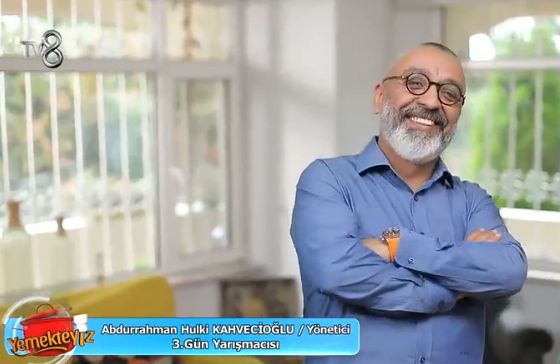 7 kasım çarşamba günü Abdurrahman Hulki Kahvecioğlu yarışacak. Yarışmacıları evlerinde güzel yemeklerle karşılayacağını söyleyen yeni yarışmacımız Abdurrahman Hulki, 49 yaşındadır. Aslen Ankaralı olan abdurrahman bey evli ve bir çocuk babasıdır. İş Merkezi’nde yöneticilik yapan yarışmacının programa katılmasıda baya bir ilginç. Yemekteyiz izlerken ekrandaki yarışmacıya kızmış ve programa katılma kararı almıştır.